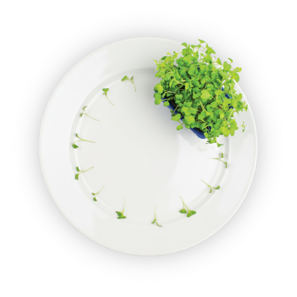 Our living microgreens, Broccoli Cress, are grown and distributed in clean, natural fiber and come in a cress tray to ensure their longevity and freshness. Keep them in a cool place, either on the kitchen counter or in the refrigerator, to maintain optimal quality.