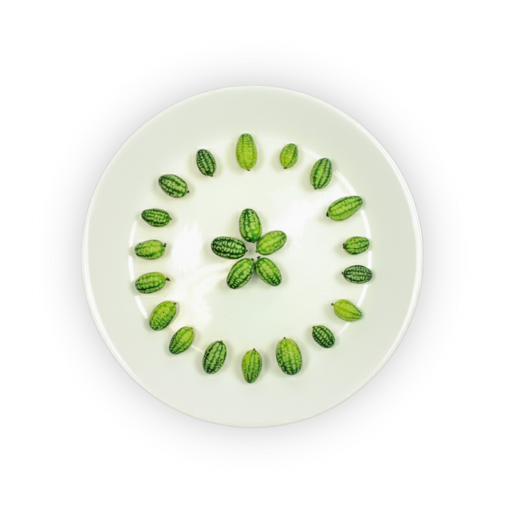 Pepquiño resembles a miniature watermelon but packs the refreshing, tangy flavor of cucumber. At just around two inches long, these tiny melons have a crisp, juicy texture and a bold, slightly sour finish that makes them perfect for a variety of culinary applications. Their vivid green skin, often adorned with light striping, adds visual appeal, making them an eye-catching addition to any dish.